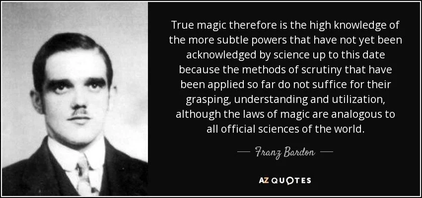This is a much more science-y kind of magic, grounded in the “earth” of the body and our home-base reality. Bardon always said that science and magic are the same. For me, this is the stuff now, this is my jam. Magic is real - just a part of the natural universe that we cannot explain in scientific terms. Yet!