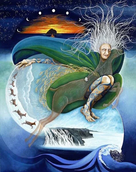 En Cailleach is there - she’s tall - a giantess with black hair, an apron, boots and brandishing a wooden spoon. I give her a tiny pint glass of whisky and ask my question: